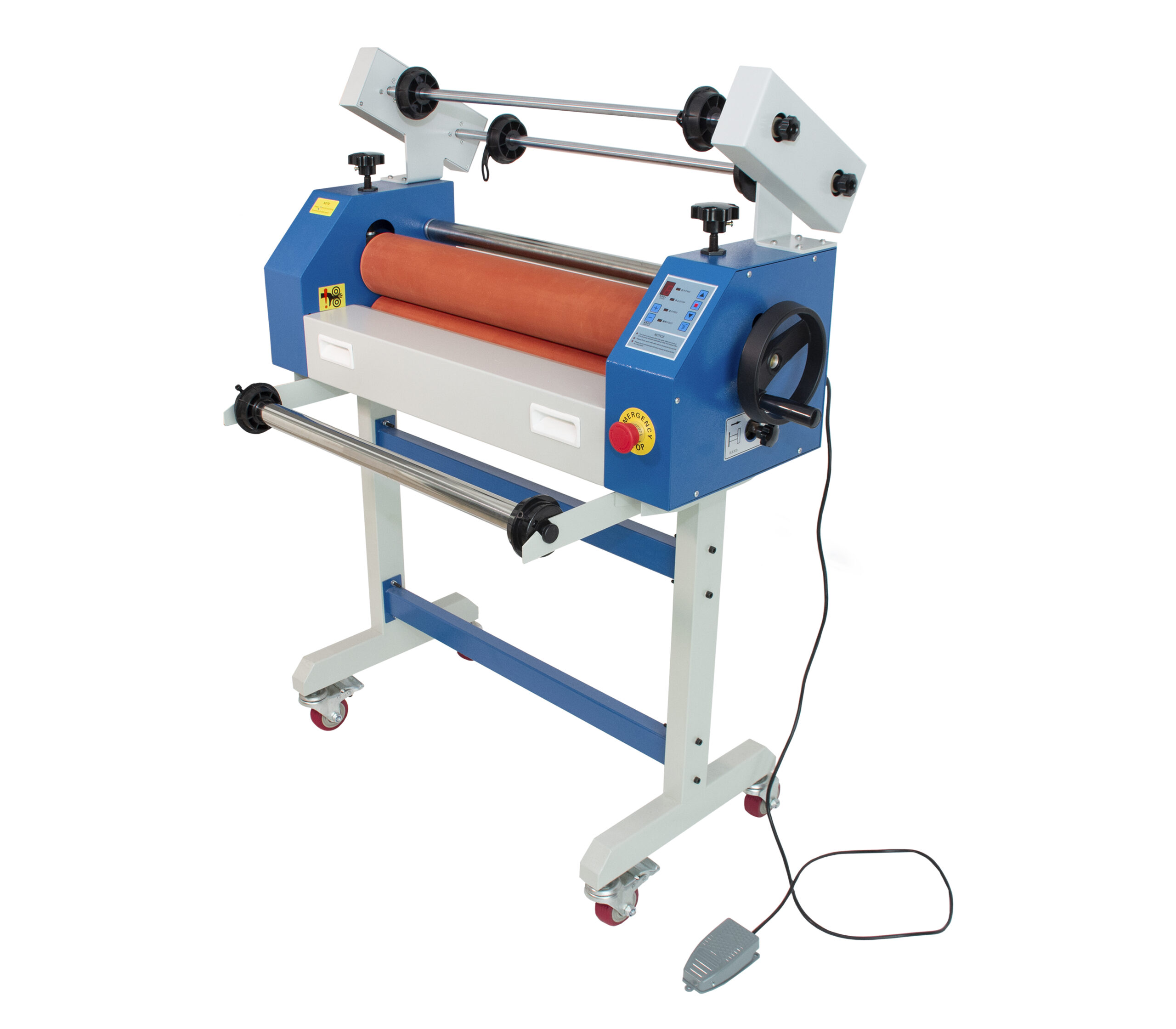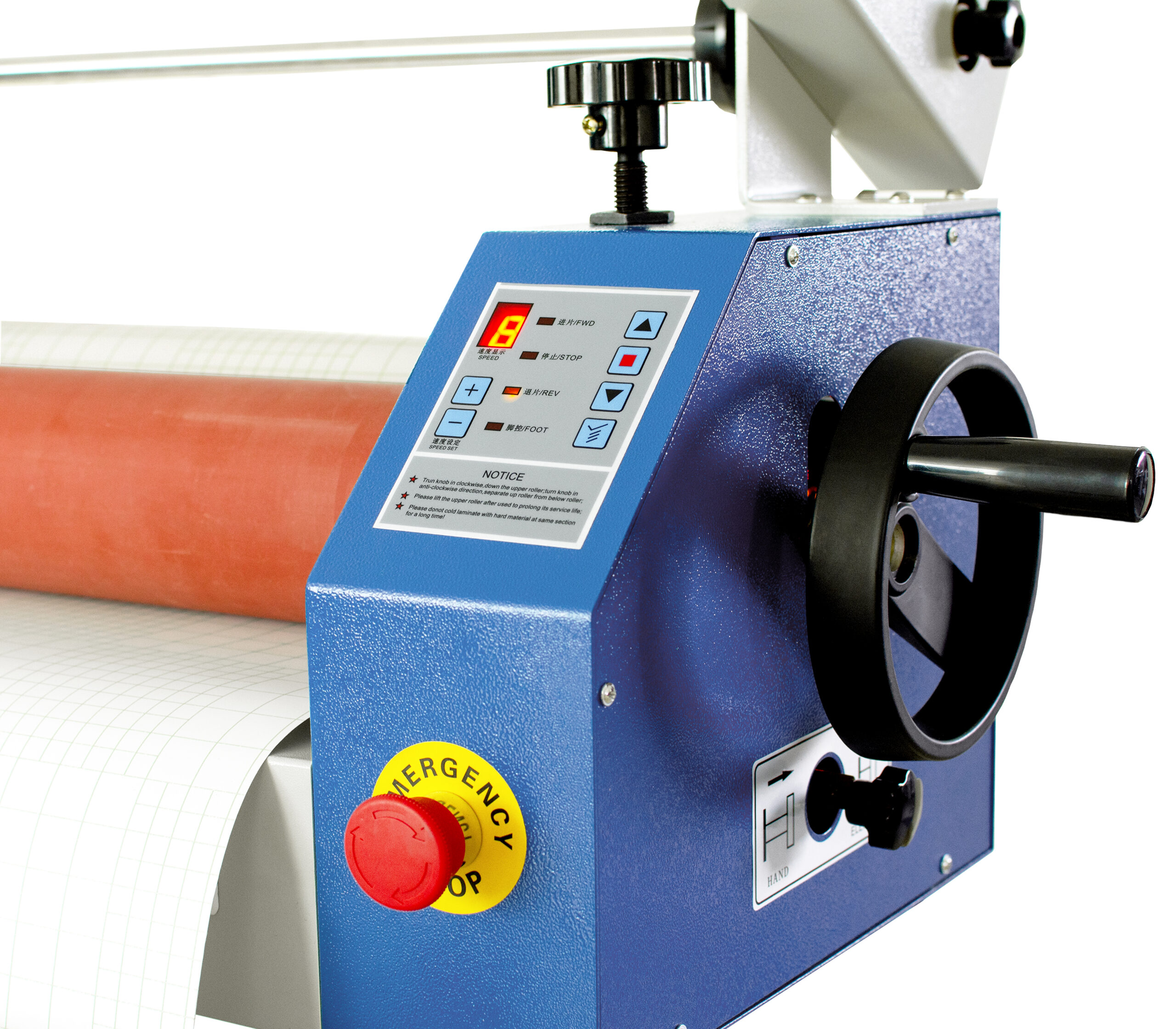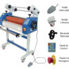Laminadora Eléctrica Semi-Automática con avance automático. No requiere ningún tipo de calentamiento. Es ideal para un flujo de trabajo más rápido y eficiente.