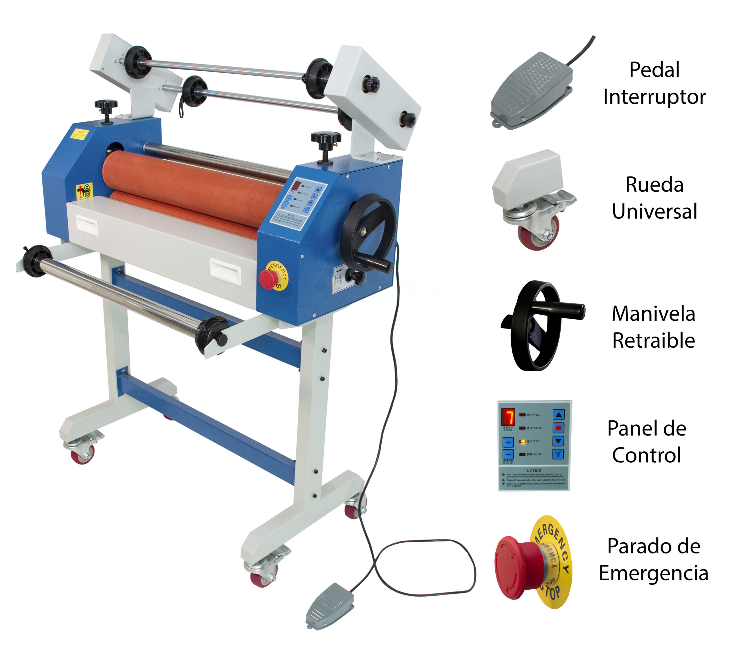 • Película de soporte: cuenta con un rodillo de soporte fácil de montar / desmontar, ideal para colocar el rollo de película en frío, eficientizando tu proceso.