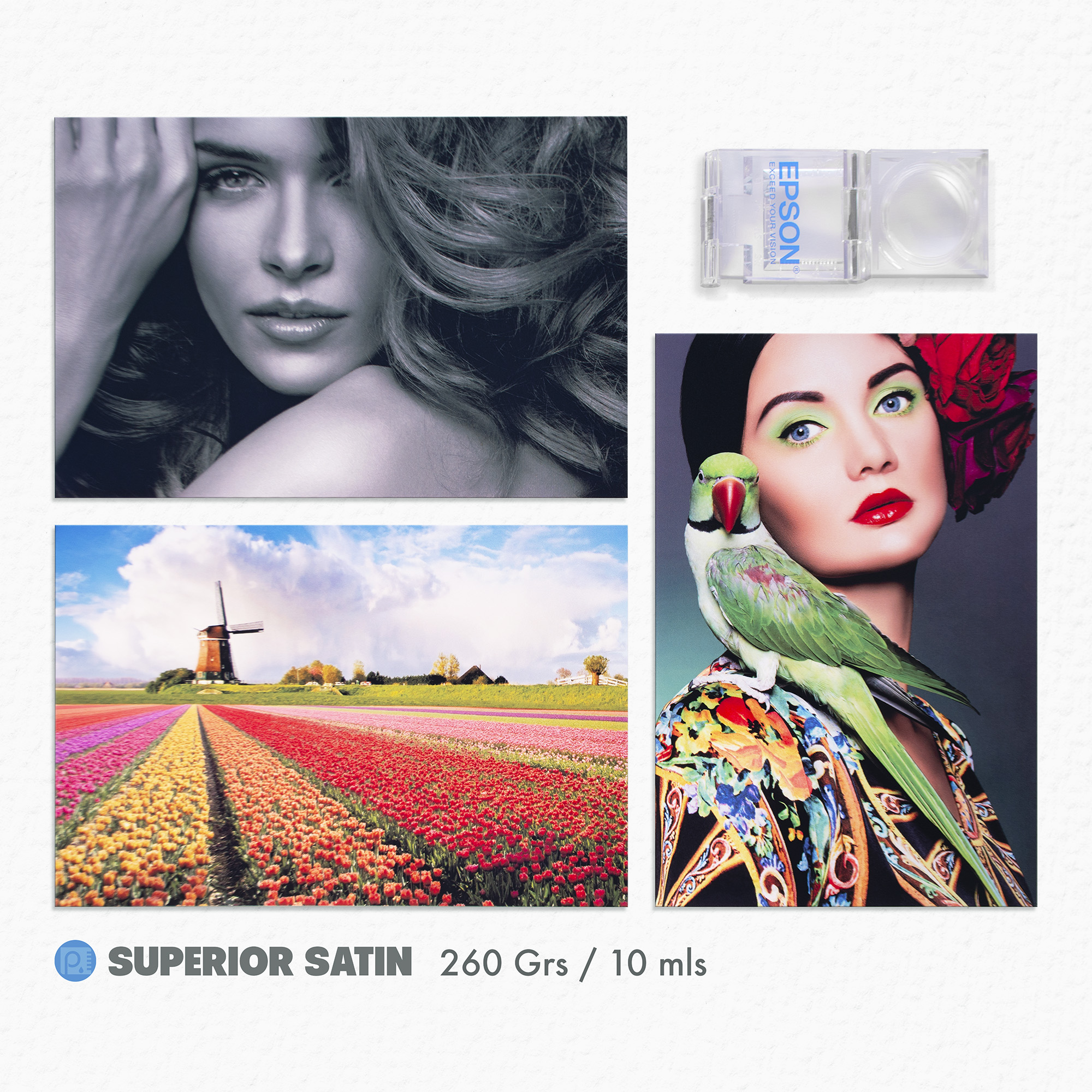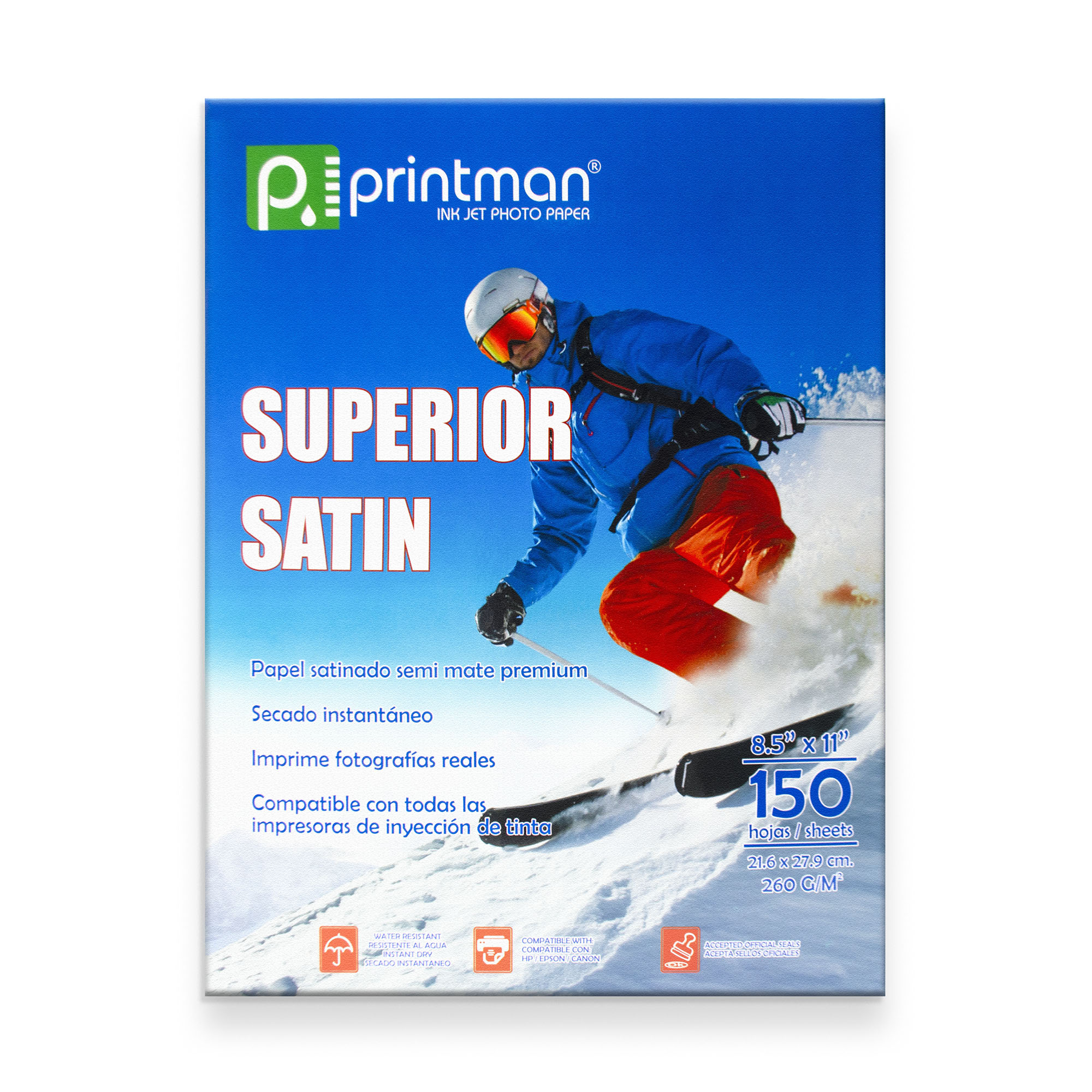 Superior Satín es un papel de suave textura y acabado semi-brillante, compatible con todas las impresoras de inyección de tinta (Epson, Brother, Canon, Etc).
